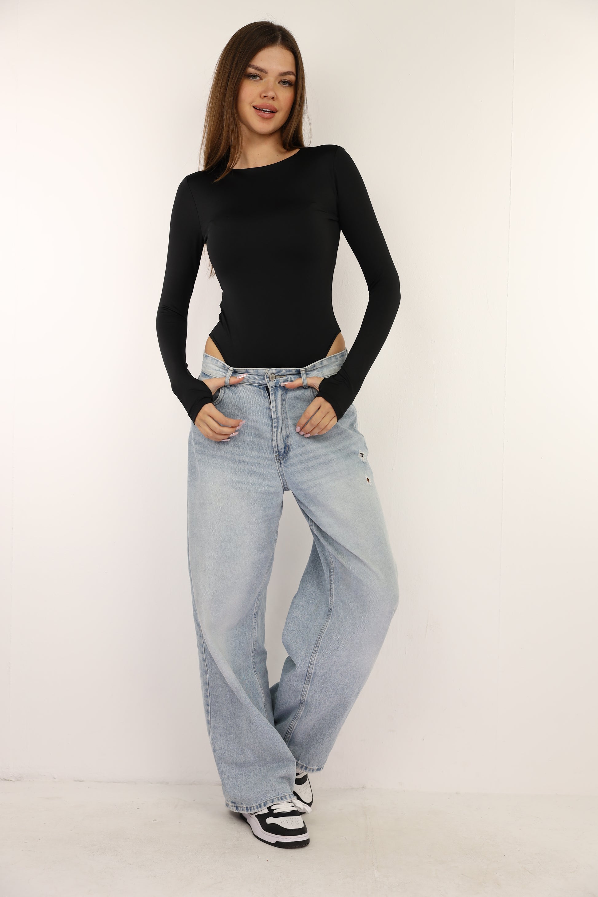 Black Bodysuit Long Sleeves Top Finger Hole