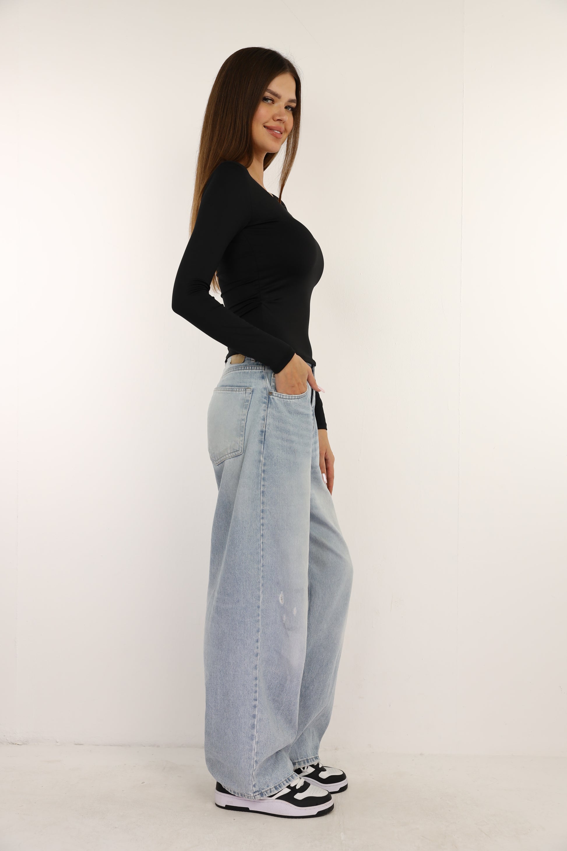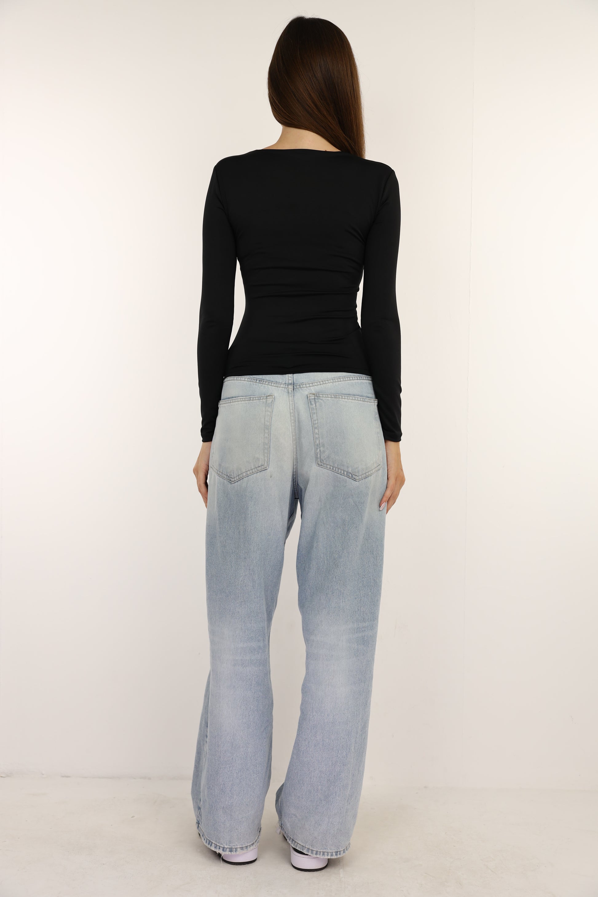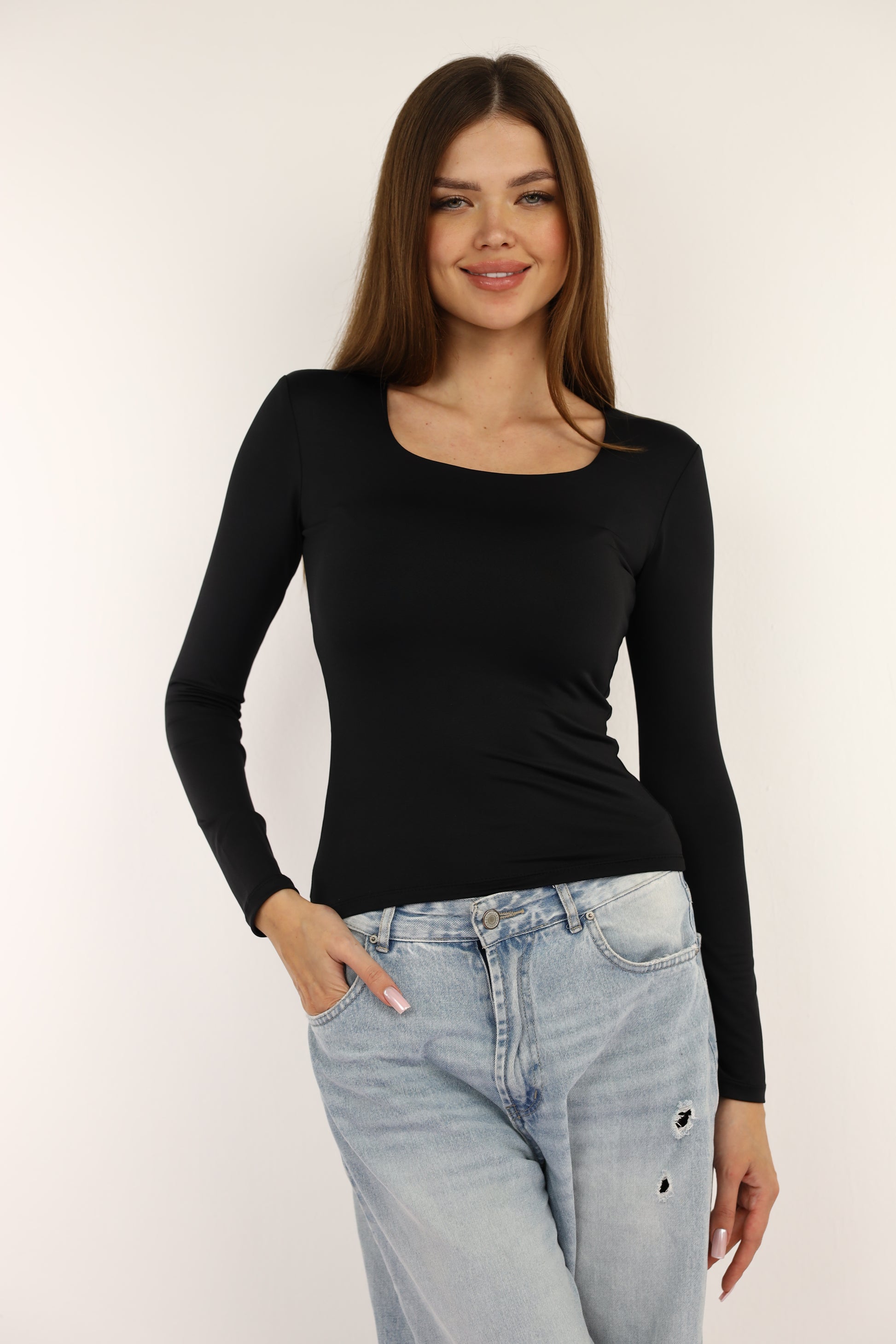 Black Squared Neck Long Sleeve Top