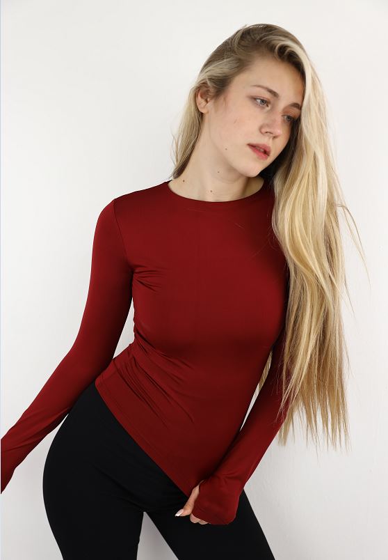 Maroon Long Sleeve Top With Finger Hole
